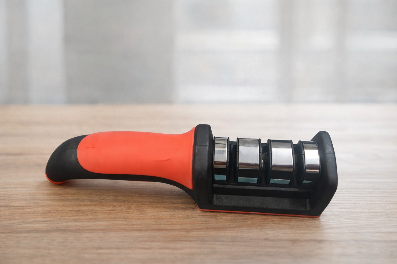 Mantén tus cuchillos siempre como nuevos con este práctico afilador manual de 3 etapas. Diseñado para restaurar, afilar y pulir el filo de manera rápida y segura, es el complemento perfecto para tu cocina.