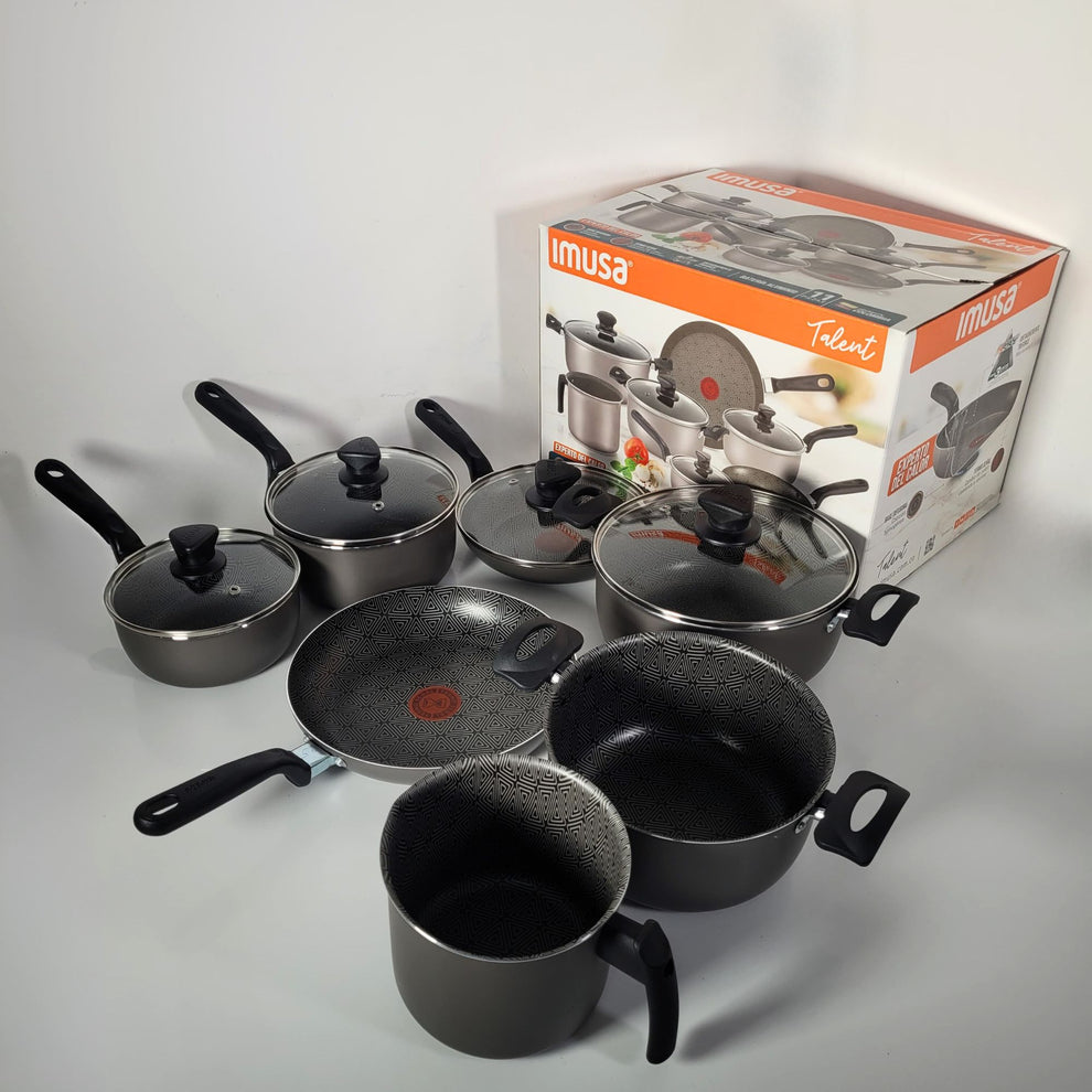 Juego de batería IMUSA de 11 piezas es un conjunto completo de utensilios de cocina, perfecto para quienes buscan calidad y rendimiento en cada preparación. Fabricadas con materiales de alta calidad y un revestimiento antiadherente, estas ollas y sartenes aseguran durabilidad, fácil limpieza y un rendimiento superior en la cocina. Su diseño ergonómico facilita el manejo, mientras que su versatilidad las hace adecuadas para una variedad de técnicas de cocción, desde hervir hasta saltear.