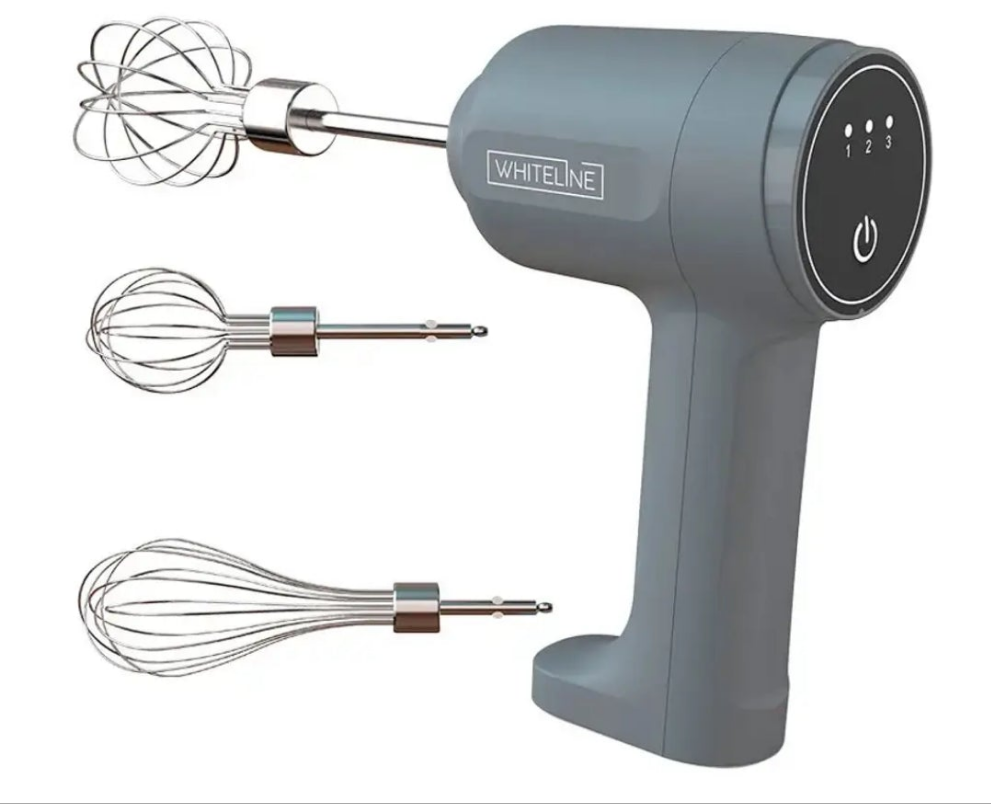 Batidora Inalámbrica Whiteline,es inalámbrica, lo que ofrece libertad de movimiento en la cocina. Incluye batidores intercambiables de acero inoxidable y un botón ON/OFF con tres velocidades ajustables.