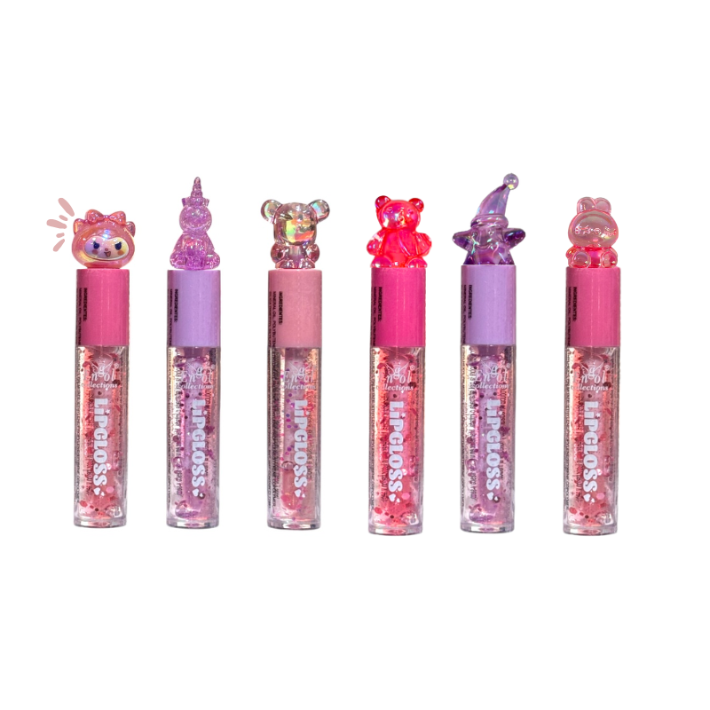 Esto es un brillo de labios (lip gloss) de la marca Engol, probablemente un modelo Kawaii con aplicador de personaje de fantasía.