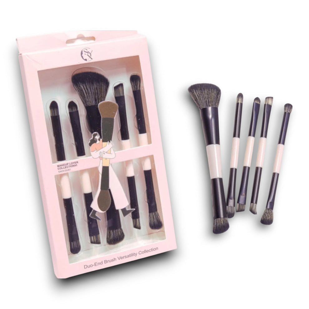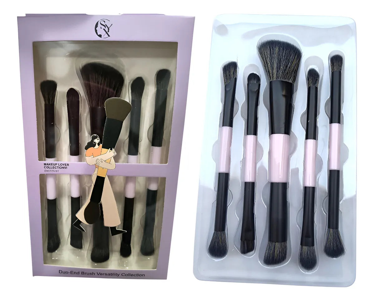 El set incluye siete brochas de doble extremo, lo que equivale a 14 puntas de brocha diferentes para diversas aplicaciones de maquillaje.