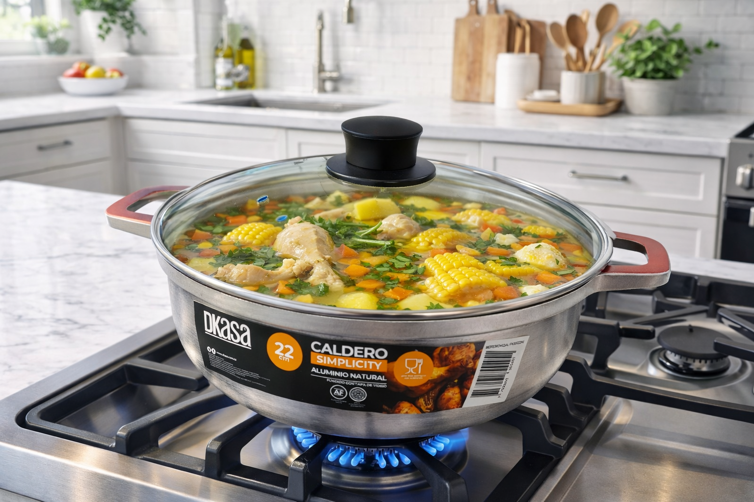 Práctico y resistente caldero de 22 cm, fabricado en aluminio de excelente calidad que garantiza una distribución uniforme del calor para una cocción más rápida y eficiente. Ideal para preparar sopas, arroces, guisos y hervidos. Su tamaño es perfecto para porciones familiares pequeñas, y su diseño ligero facilita el manejo y la limpieza. Perfecto para el uso diario en tu cocina