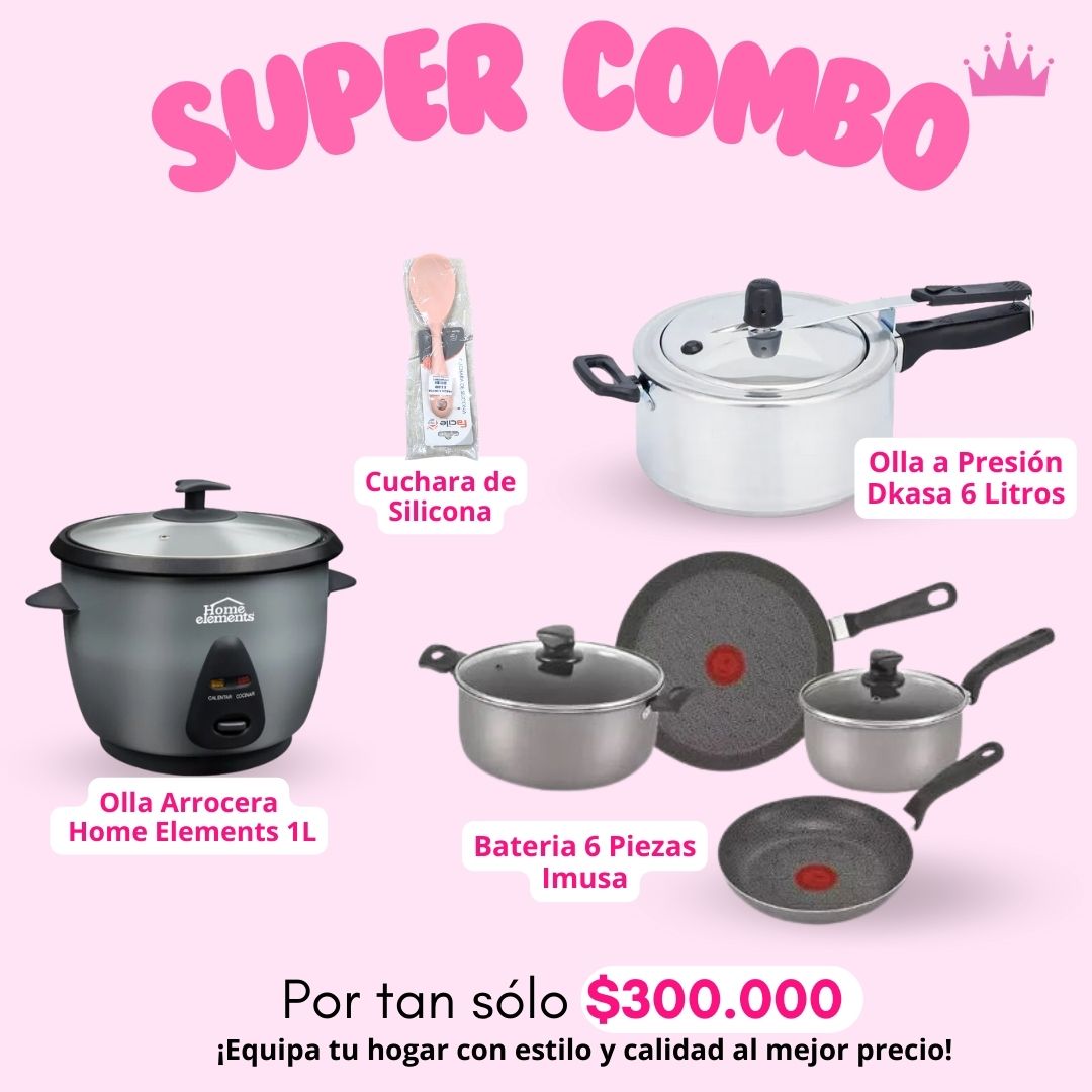 - Batería Imusa 6 piezas: Incluye ollas y sartenes con recubrimiento antiadherente.