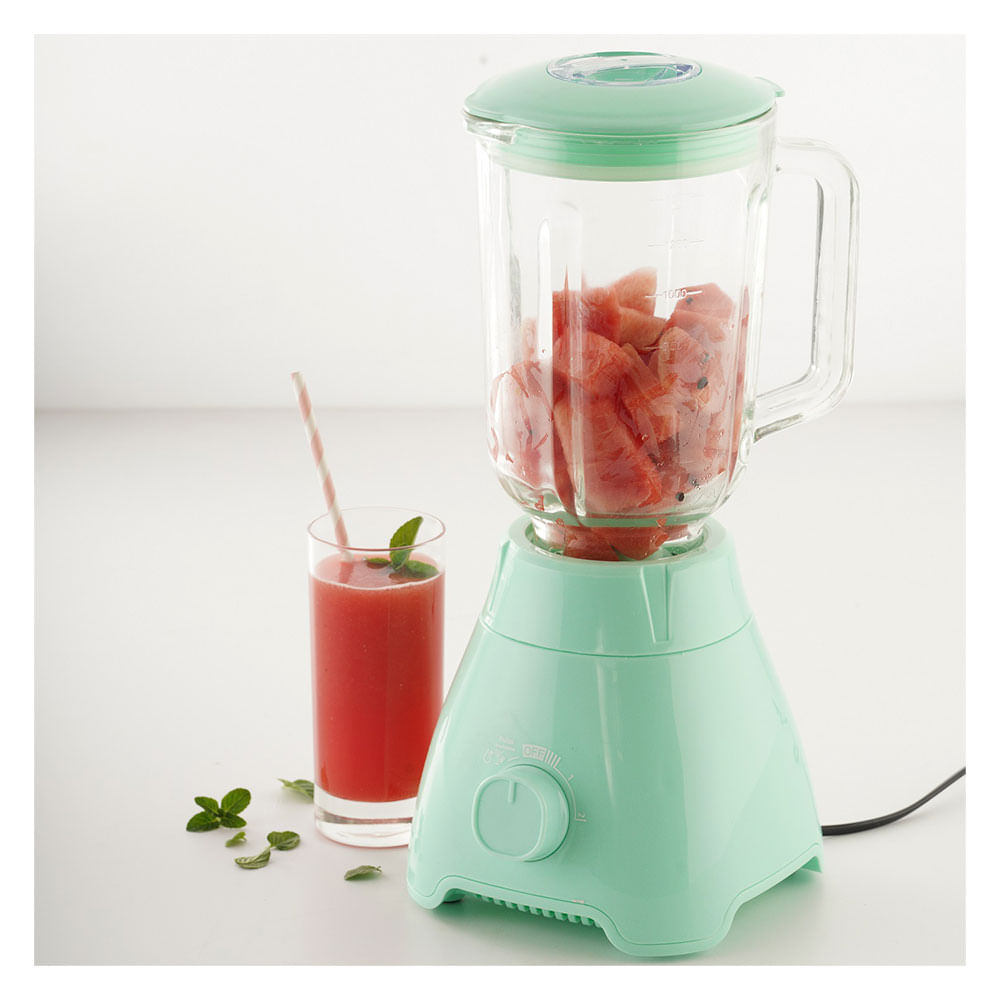Prepara jugos, batidos de forma rápida y eficiente con esta licuadora en color menta. Cuenta con jarra de vidrio resistente, 550 watts, deal para triturar frutas, verduras y hielo, manteniendo el sabor y la frescura de tus bebidas. Su tapa con cierre seguro y control de velocidad facilitan un uso práctico y seguro en la cocina. Perfecta para el hogar, combina potencia, estilo y durabilidad en un solo producto.