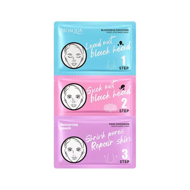 Elimina los puntos negros de tu nariz de manera efectiva y sencilla con la Mascarilla 3 Pasos Bioaqua BQY7953. Este tratamiento completo, que incluye tres tiras nasales, suaviza y remueve profundamente las espinillas e impurezas, dejando tu piel limpia y nutrida. Con ingredientes de origen herbal, esta mascarilla ayuda a regular la grasa del rostro mientras cuida y nutre tu piel.
