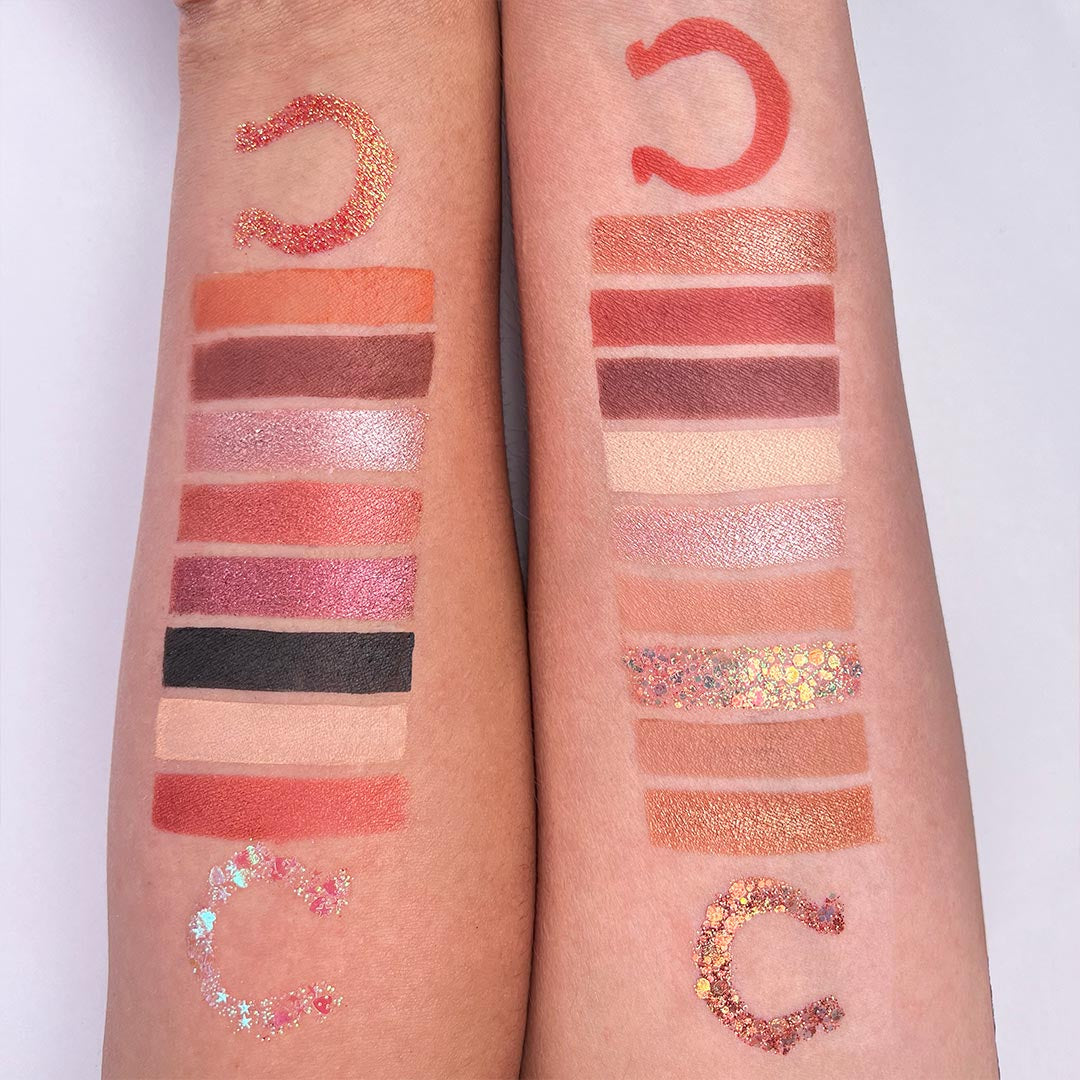 Una BEST SELLER, MEJOR VENDIDA. La paleta perfecta para el look perfecto. Con tonos 100% terracotas ideal para técnica foxy eyes y agatados. Con 21 pigmentos entre glitters, mineralizados, mattes y brillantes. Incluye espejo.