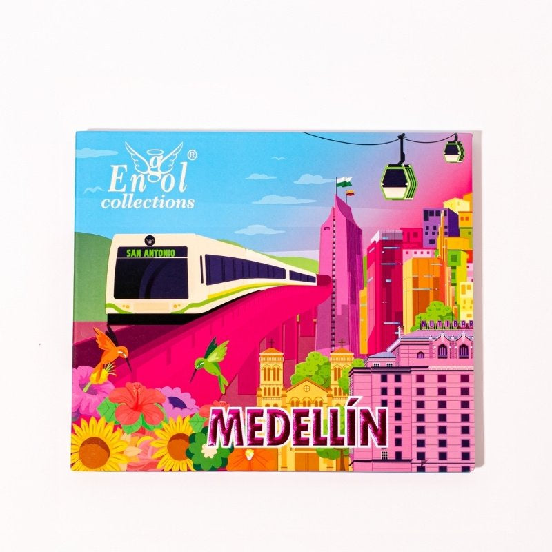 El clima de Medellín, su paisaje montañoso, sus espectaculares vistas panorámicas y sus espacios verdes plasmados en esta hermosa paleta de sombras.