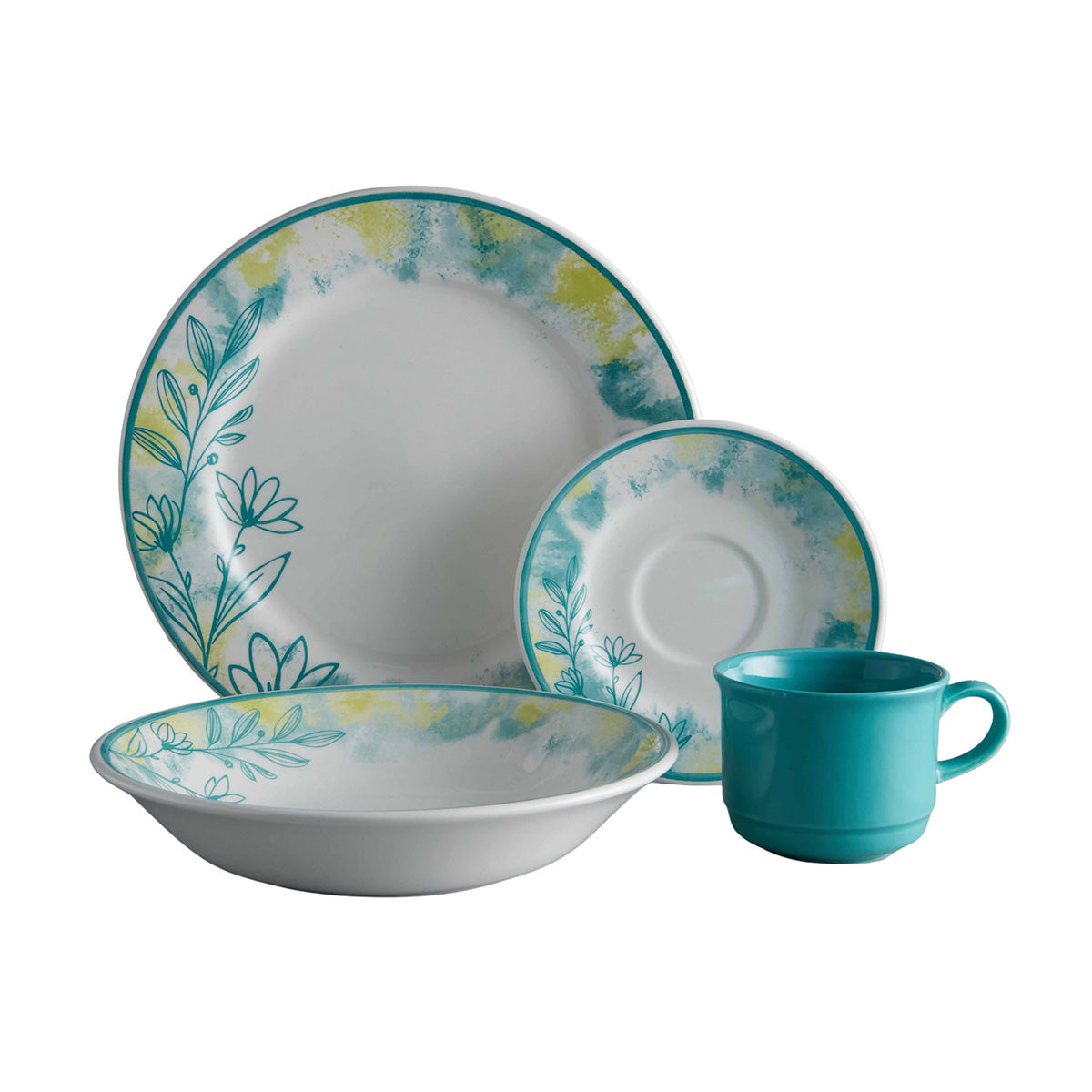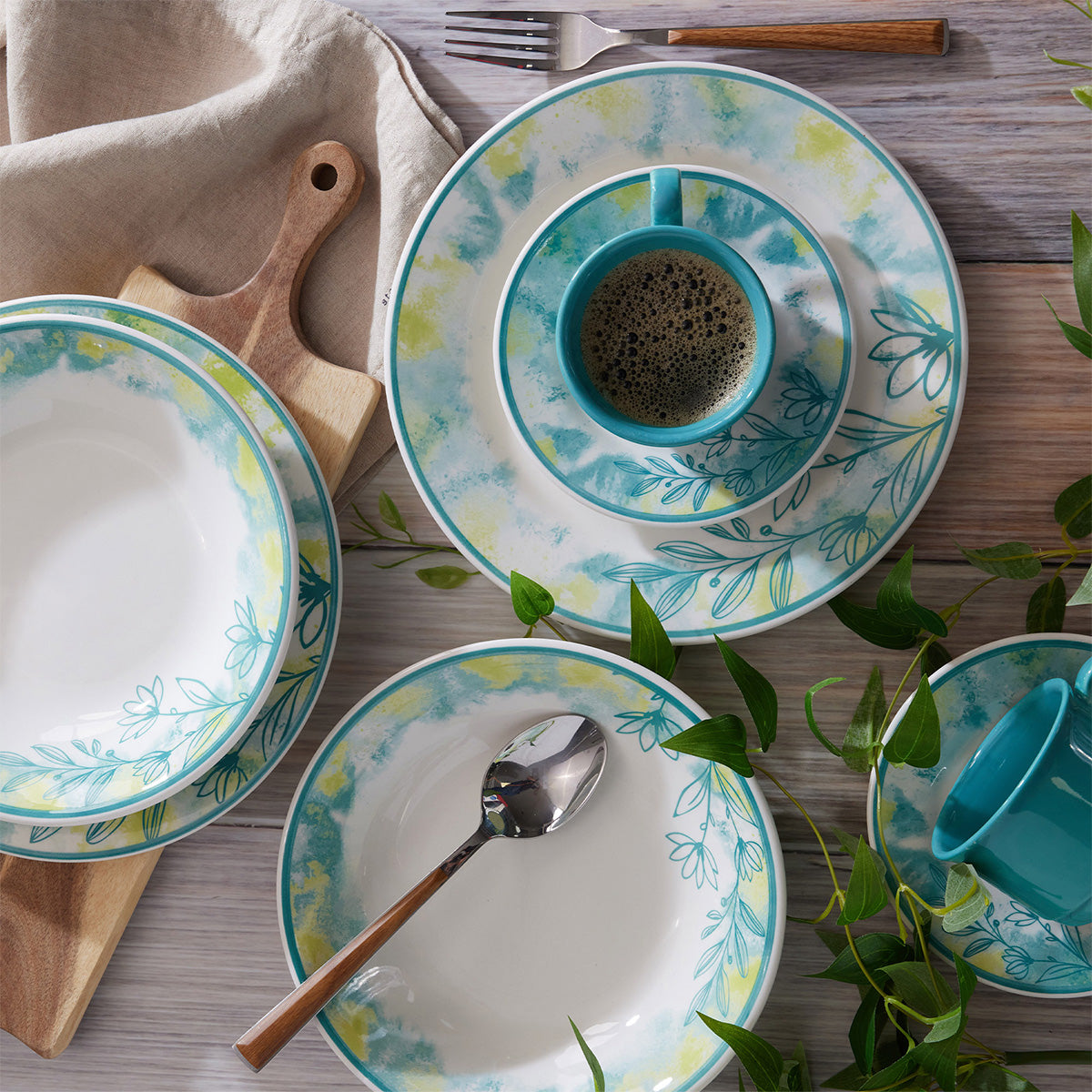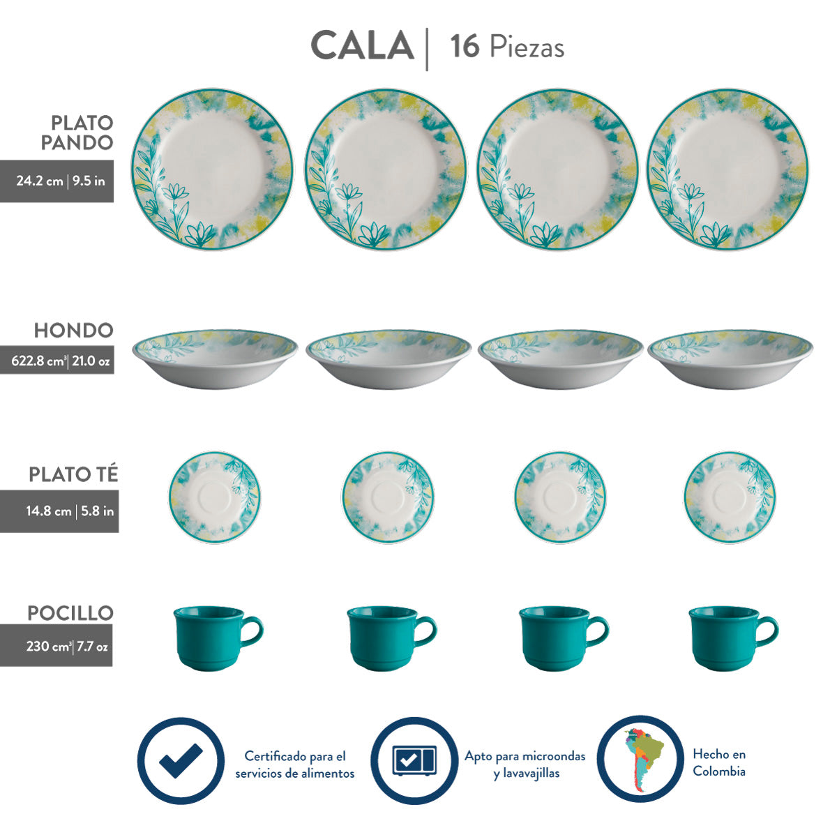 Suavidad, Tranquilidad y equilibrio es lo que representa esta vajilla, con una combinación de colores perfectos que le darán a tu mesa un toque mágico.